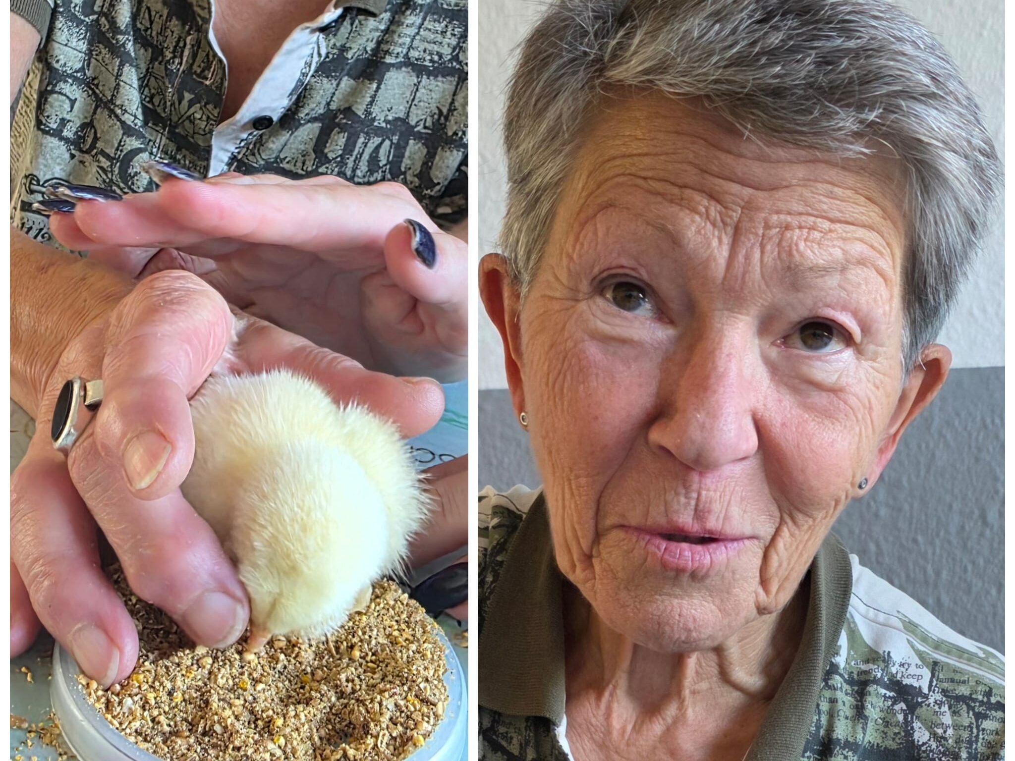 … brütet und hütet mit ihrer Tochter auch schon mal in der Wohnung die Küken für die Enkelkinder.